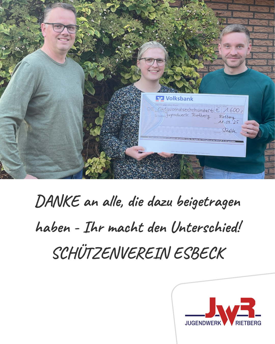 Schützenfest bedeutet nicht nur Tradition & Gemeinschaft – sondern auch echtes Miteinander. Dank einer großartigen Hutsammlung vom @schützenverein.esbeck sind unglaubliche 1.600 € zusammengekommen! Diese Spende geht an unsere Inobhutnahmegruppe, die Kindern in akuten Krisensituationen ein sicheres Zuhause gibt. Ein riesiges DANKE an alle, die dazu beigetragen haben – Ihr macht den Unterschied!